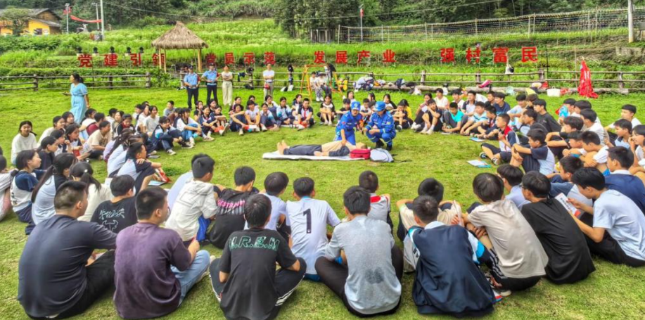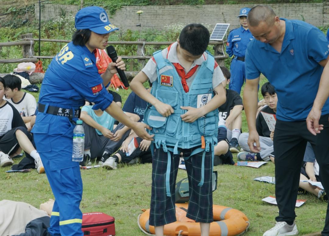 “不慎落水,如何自救?他人溺水,该怎么办?”近日,来自江西宜春铜鼓县港口中学的200余名师生前往港口乡赤洲村碧湾海开展水上研学和文明实践活动。 师生们通过知识问答、现场观摩、实物操作等方式,了解了防溺水安全常识和基本急救方法。活动现场,港口乡应急办和蓝天救援队借助假人模型,详细讲解了心肺复苏的操作流程,并带领大家进行实际操作。模拟演练还原了从落水到救助的完整过程,让学生切身感受到落水现场情况紧急,教会学生们面对突发事件保持镇静、正确开展救援。